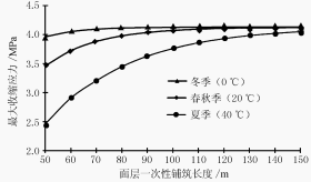 圖1設(shè)置隔離層時不同季節(jié)切縫前板內(nèi)最大拉應(yīng)力