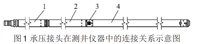 設(shè)計(jì)了承壓接頭連接儀器的探頭短節(jié)和電子線路短節(jié),該承壓接頭提供了有效的電連接通道,從而解決石油測(cè)井儀器耐高溫高壓電連接問題。承壓接頭主要由接頭體構(gòu)成,由17-4PH不銹鋼制成。對(duì)接頭體進(jìn)行了強(qiáng)度分析和試驗(yàn)測(cè)試,結(jié)果滿足要求。該設(shè)計(jì)已成功應(yīng)用于感應(yīng)測(cè)井儀器和聲波測(cè)井儀器,進(jìn)行產(chǎn)業(yè)化生產(chǎn),已取得不錯(cuò)的經(jīng)濟(jì)效果。