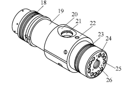 如圖2所示,承壓接頭體17材料為高磁導(dǎo)率高強(qiáng)度材料,比如高磁導(dǎo)率高強(qiáng)度沉淀硬化不銹鋼17-4PH。使用此種材料一方面可以對(duì)多路信號(hào)進(jìn)行有效地電磁屏蔽,另一方面可用來承載140MPa的環(huán)境壓力。承壓接頭體17的左端為容納電子線路線槽的常壓